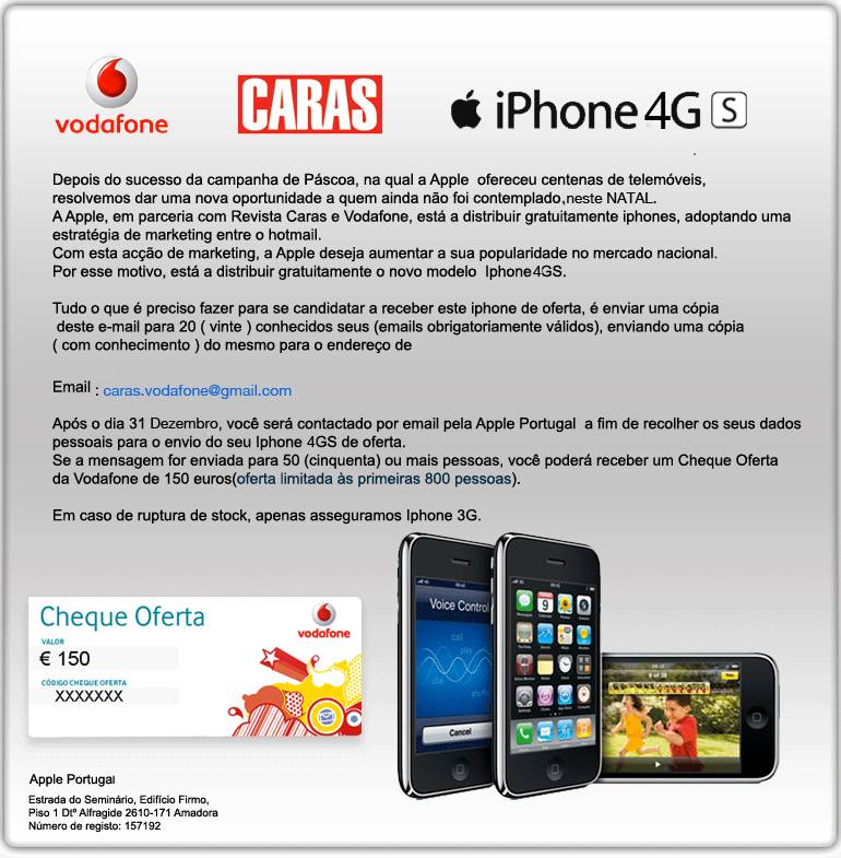 Estes emails pretendem apenas recolher os endereços electrónicos epara envio de SPAM e virus. Servem também para vender pacotes de emails às empresas (maillists).